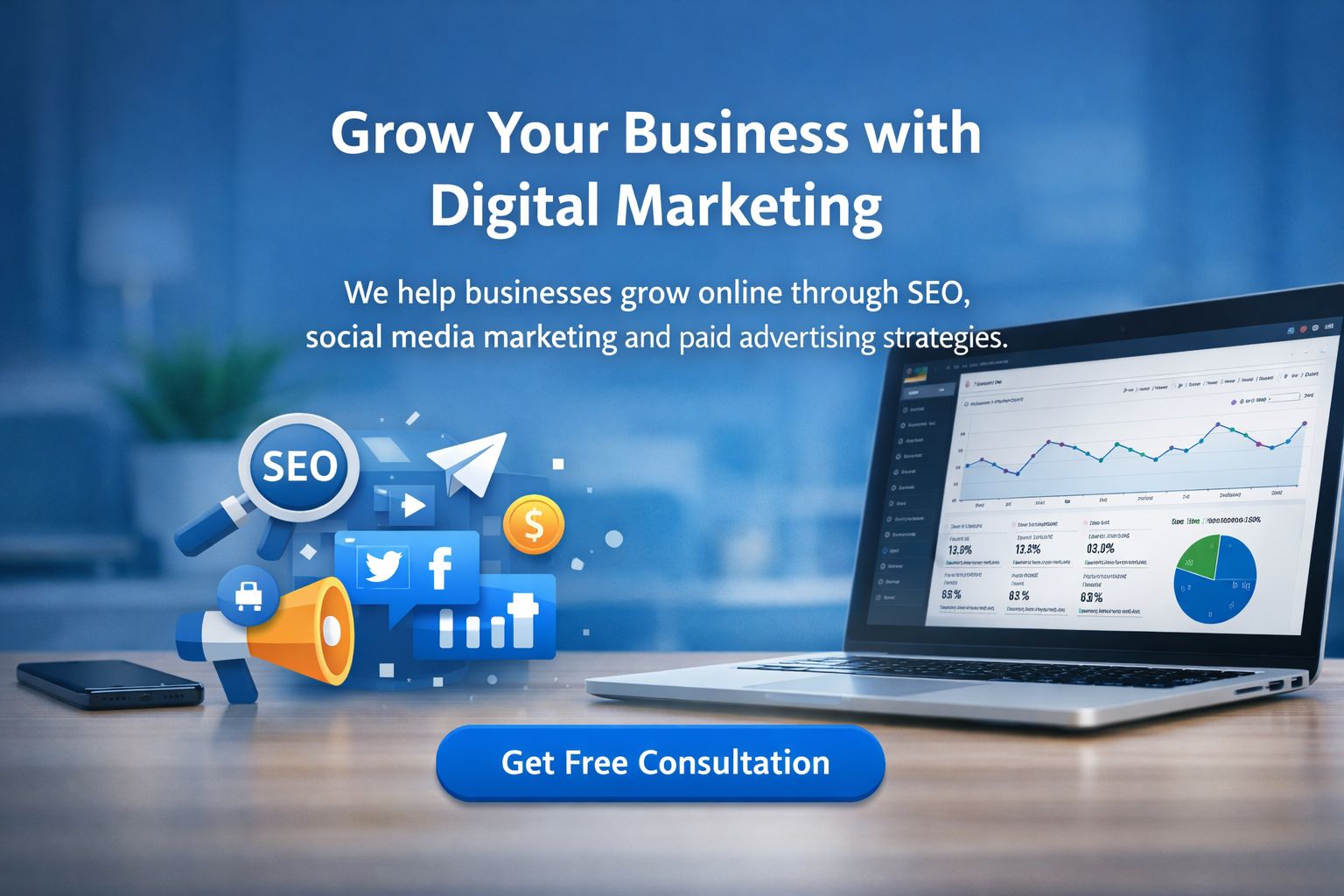 Grow your business with powerful digital marketing strategies designed to increase your online presence, attract more customers, and boost your sales. We help businesses succeed in the digital world by combining creativity, data-driven strategies, and the latest marketing tools. Our team specializes in Search Engine Optimization (SEO), Social Media Marketing, Website Development, Content Marketing, and Paid Advertising to ensure your brand reaches the right audience at the right time